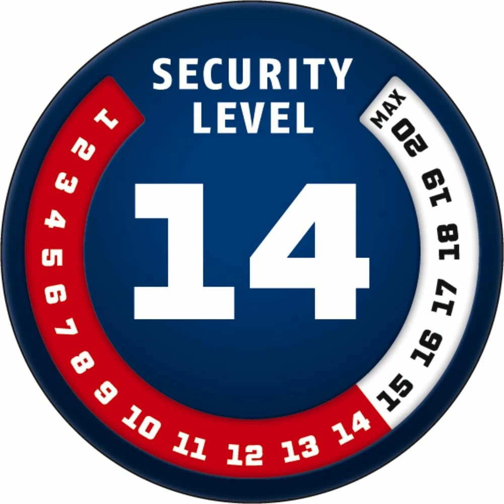 Bøjlen på 14 mm er fremstillet af specielt hærdet stål og dobbeltlåses i den kraftigt pansrede låsekrop. En ABUS XPlus cylinder øger beskyttelsen mod sabotage, såsom dirkning.