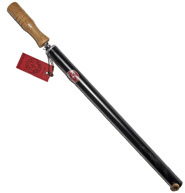 Fremstillet af et langt stålrør, samt et fint træhåndtag, hvor du med et solidt greb, kan pumpe dine dæk op på bedste vis.
