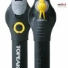 Denne fodpumpen passer til alle slags ventiler (dunlop, racer og auto ventiler) og har et dobbelt pumpehovede hvor du kan skifte til den pakning der passer til lige netop den type ventil din cykel har. Fodpumpen har derudover et smart præcisionsmanometer hvor du nemt kan holde styr på trykket.